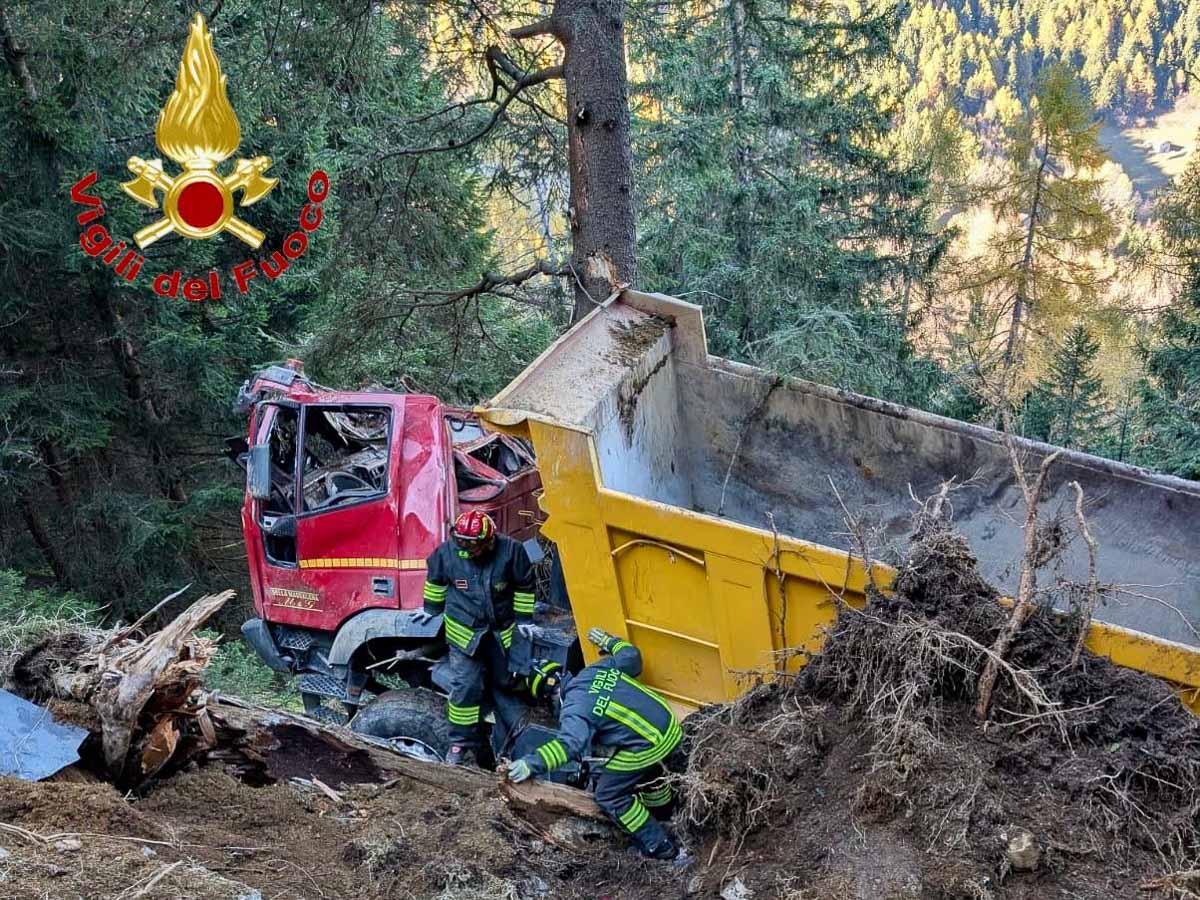 Camion si ribalta e scivola a valle per 200 metri: un ferito